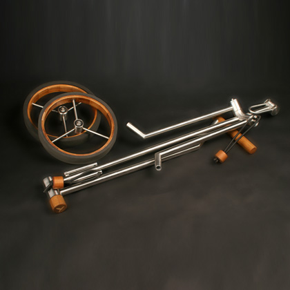 Den Mickley Classic erhalten Sie ab einem Gewicht von 3,9 kg. Zusammengelegt mißt sein Rahmen ohne Räder 85 x 21 x 10 cm, mit Rädern 85x26x12cm. Das Fahrwerk des Integral mißt ohne Räder 62x21x13cm, mit Rädern 62x26x13cm. Auf den Rahmen gewähren wir eine Garantie von 20 Jahren. |